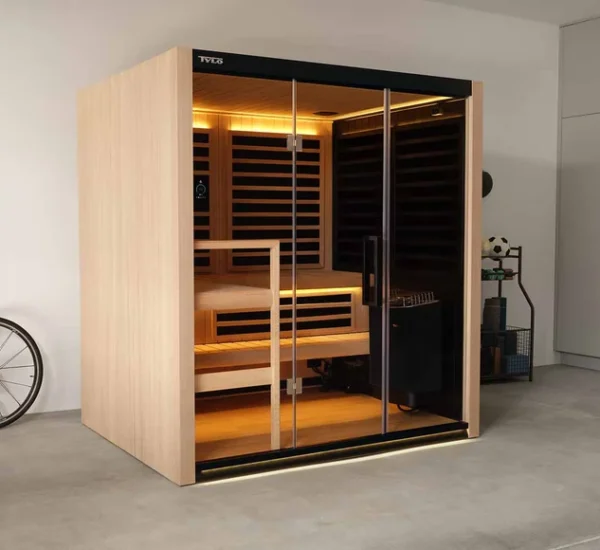 The Tylo Reflection Sauna Room with Crown Sauna Heater
